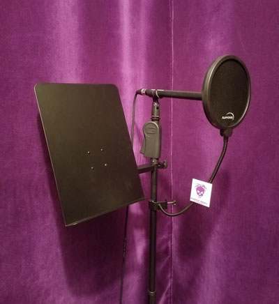 Angie uses a Sennheiser MKH 416 microphone and Sound Forge 14 software.